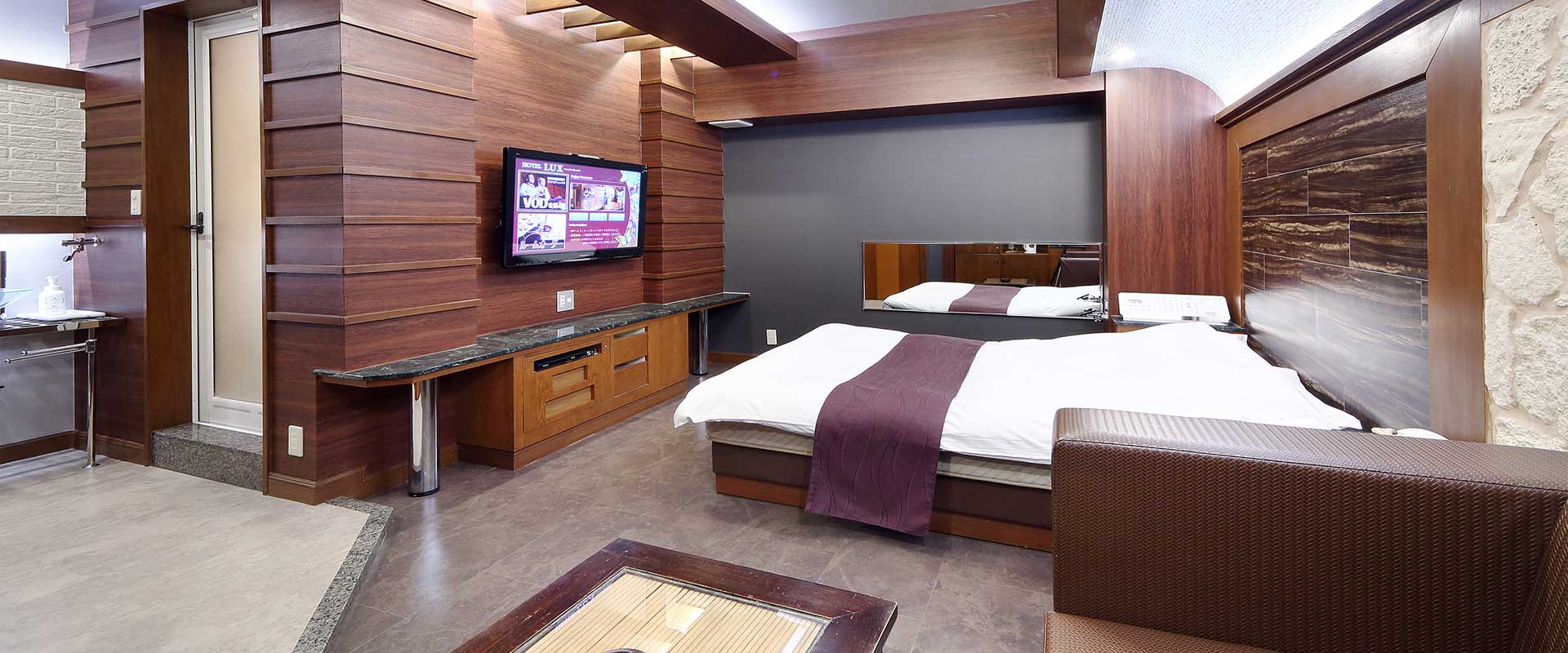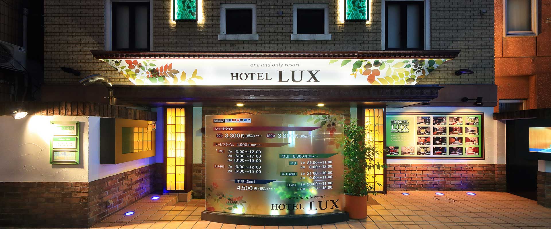 近年大きく変貌を遂げ、新館・本館ともに一新したアジアンリゾートに生まれ変わったLUX。白壁の外観から1歩中に入るとダークトーンなフロント。アジアン、モダンをテーマにした個性的なお部屋がズラリ。フリーWiFi&充電器完備。お食事は通常価格でピザ・中華料理のデリバリーが可能。